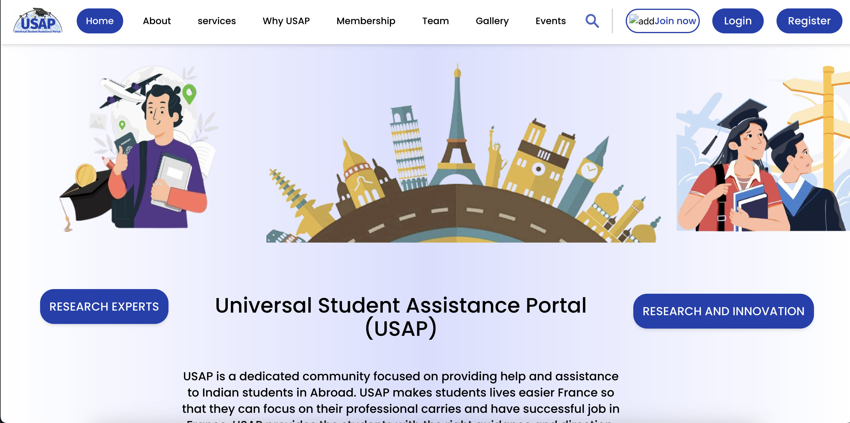 Universal Student Assistance Portal (USAP) is an all-in-one platform built to empower students in their journey to study abroad by providing expert guidance, real-time support, and secure premium consultation services. Designed as a seamless solution, USAP allows students to ask queries, receive personalized advice, track their university applications, and make secure payments—all from a single portal. With features like a student query portal, Google authentication for secure logins, automated email notifications powered by Nodemailer (scaling to over 1,000+ emails daily), and Razorpay integration handling 500+ secure transactions monthly, USAP ensures reliability and scalability for students and consultants alike. Additional tools such as consultation booking with industry experts, application tracking, and a personalized dashboard make it easier for students to stay on top of their study abroad journey. By combining expert assistance with advanced technology, USAP simplifies the complexities of studying abroad, offering students a trusted, interactive, and supportive environment to achieve their global education goals.